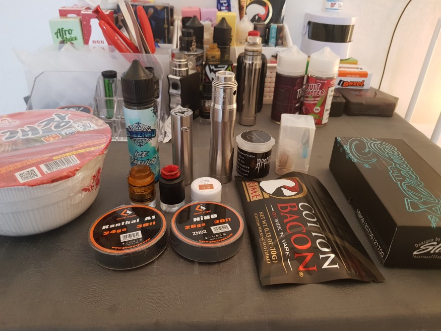 입호흡기에 코트베이컨새거 코일새거두개, 미즈님코일, 아이스야쿠르트액상에 컵라면 두개까지!!(하나배고파서 먹었습니다.)