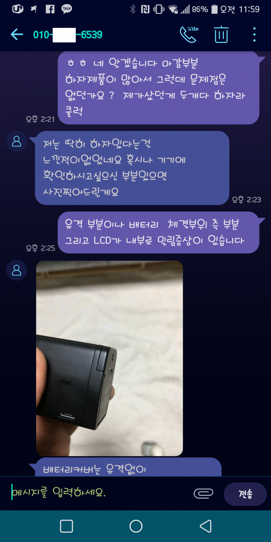 판매사진에는 저부분만 그러면 다 가리고 판매 했냐 물어보니 말도 안되는 핑계나 되고