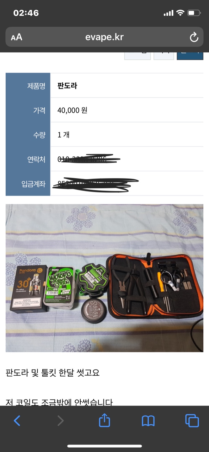 일단 구성상 들어있던 소봉코일이 안들어있었고 판도라rta는 세척이 안돼있내여ㅎㅎ 그리고 송장에 엿을 실물로보니 면전에 엿을 날리고 싶어지더라고여 너무나도 만족스러운 거래였고 그쪽 덕분에 이벺 거래 더 신중히 하게돼서 너무너무 고마워여 그러면 이만 추석에 엿많이드시고 카악퉤 하고 뱉으세요~~~