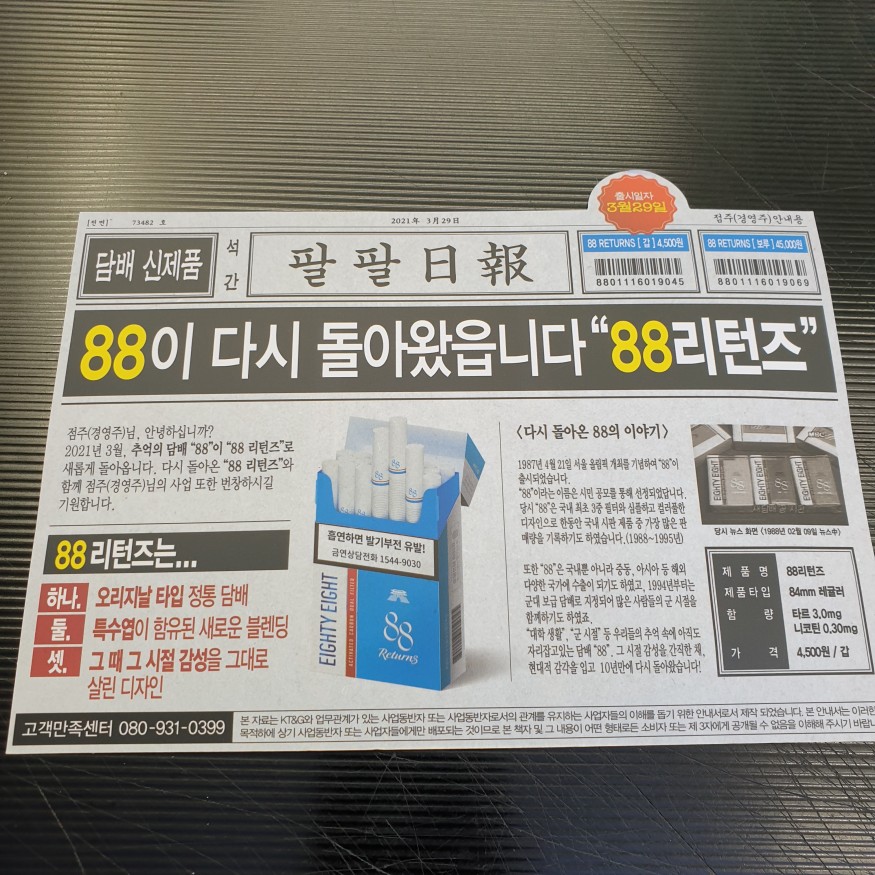 추억의 88 담배가 소환됩니다.