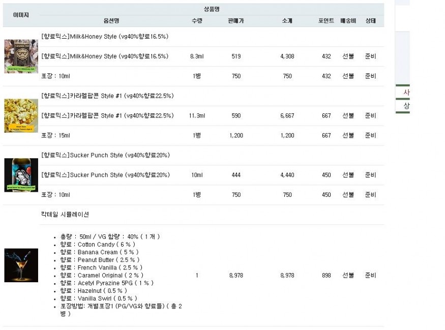 @상운향료만 믹스해서 오는제품은 pg vg 넣으셔야하고