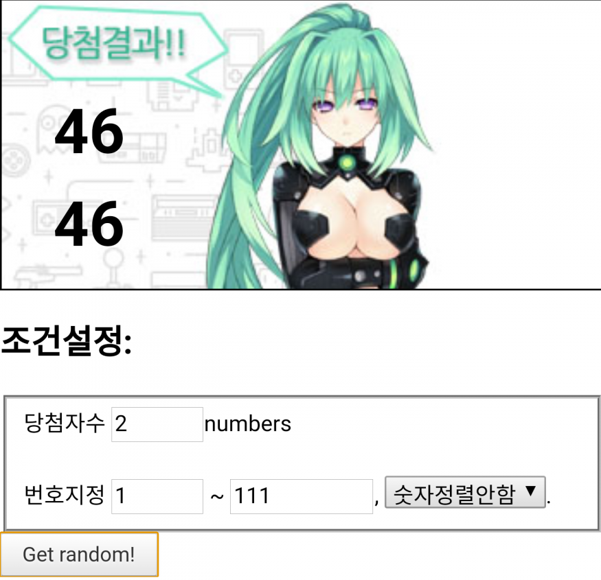 1부터 111까지 2개의 숫자 랜덤 추출
