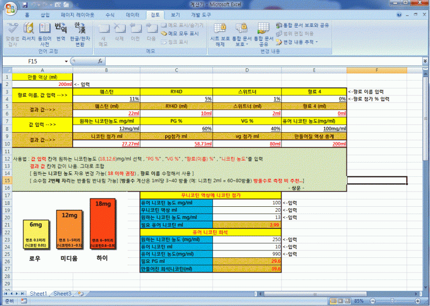 제가 이곳 알기전에 처음 시작하면서 여기저기 계산 정보 얻어 만들어놓은건데요