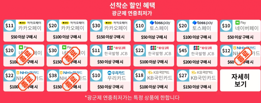 $111 이상 구매 시 $11 할인 코드: KR2208