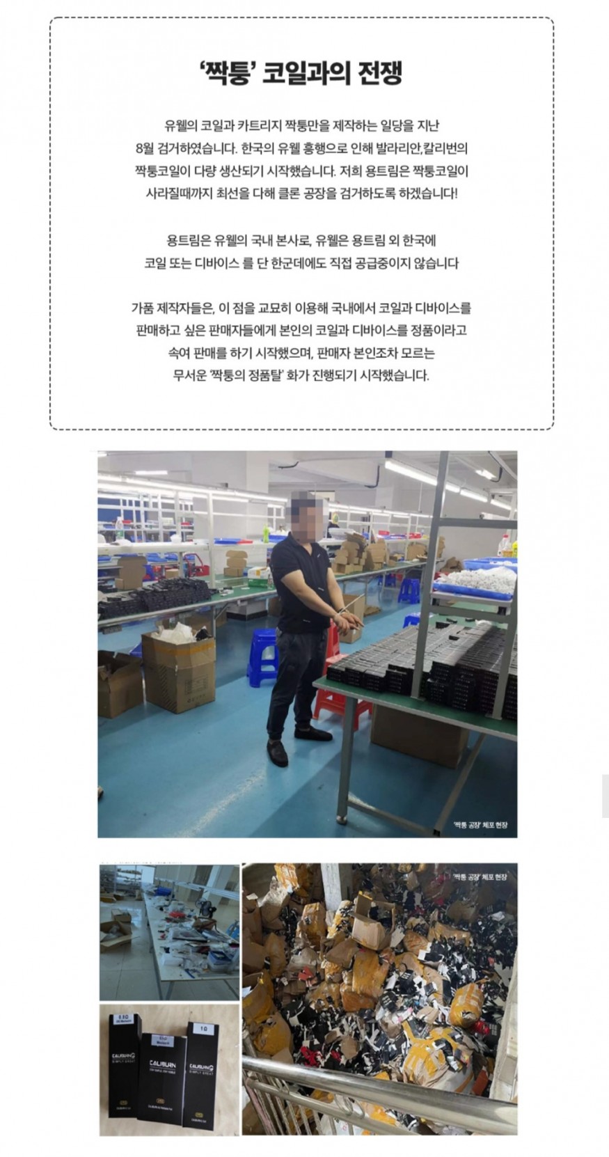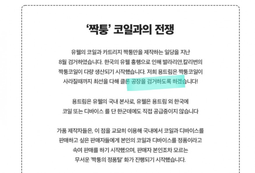발라리안 독점권이 용트림사에 있나 봐요! 기기, 코일 기술을 무단으로 도용하면 처벌 대상! |