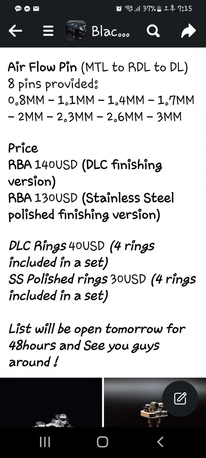 프리오더 48시간 오픈이니 여유롭게 작성할 수 있어 좋네요.
