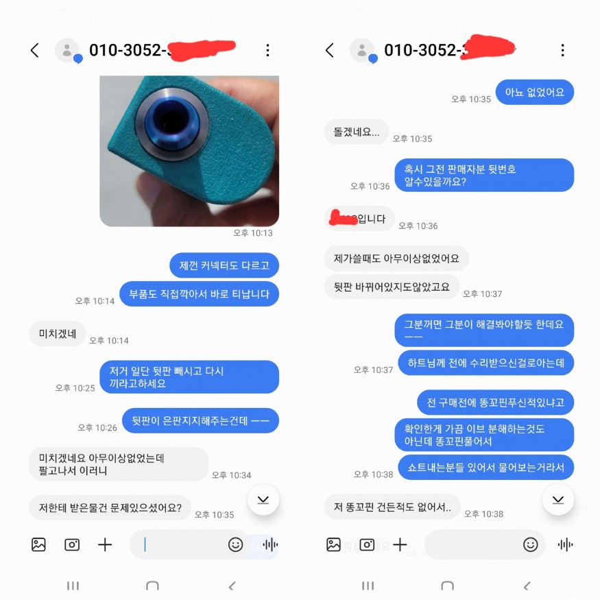 근데 알고보니 두번째 주인이 수리내역이 있었고 저는 모르고 구매한상태로 그냥 작동테스트만 하고 판매한게 전부입니다. 근데 뭐 지를 사기꾼으로 만드느냐니 혼자 개발작하고있네요 그리고 왜 지가 난리인지 모르겠습니다 이건 명시안하고 판매한것도 잘못된거고 누가 명시 안하고 판지가 먼저일탠데 그냥 저한태 저따구로 나오니 대화할 가치를 못느끼겠네요 |