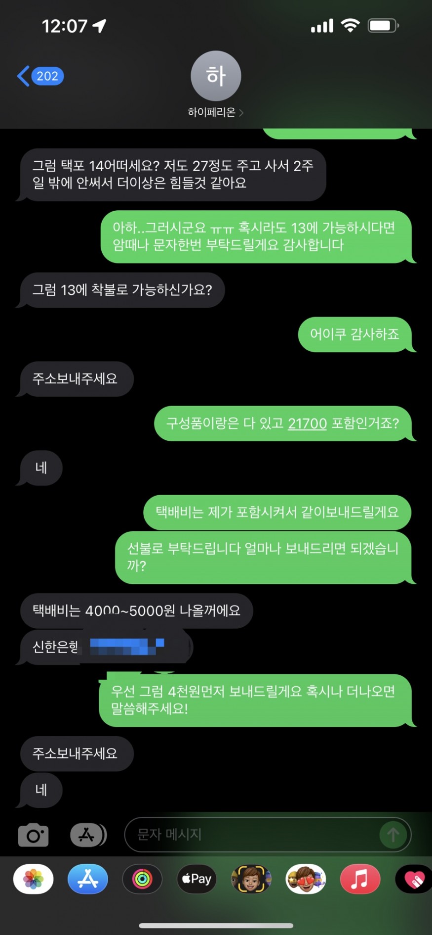 이름 : 성X 거래은행 : 신한 xxxxxxxxx741