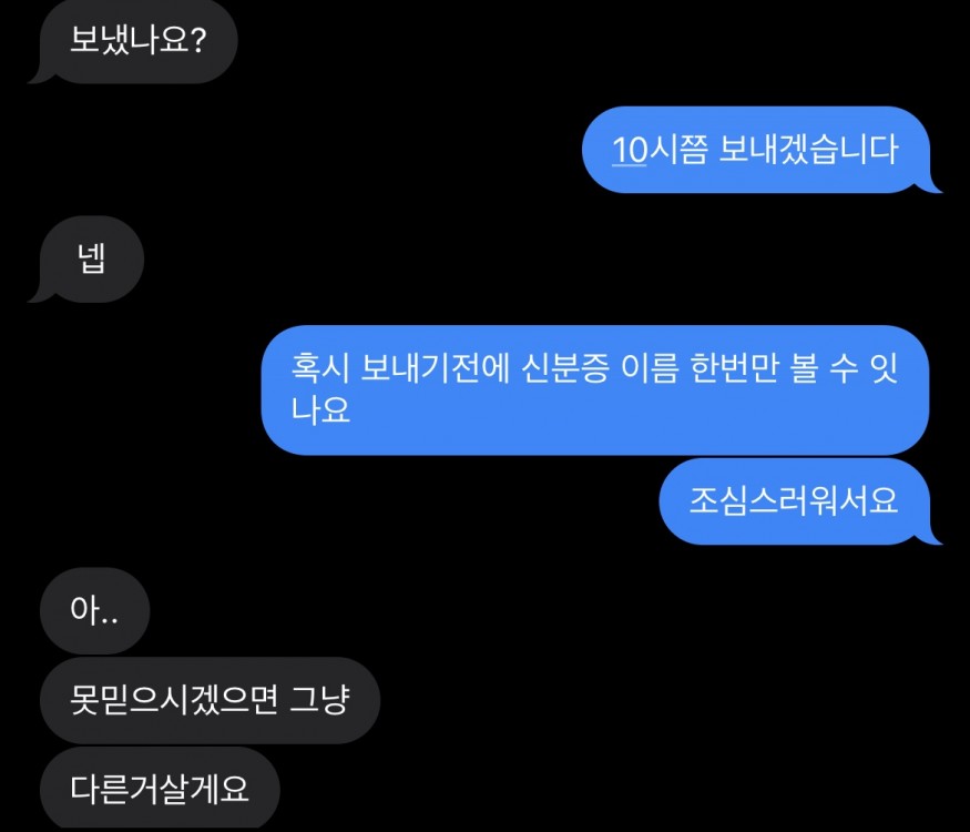 엄연히 여기는 성인들이 활동하는 사이트인데 서로 그정도도 못해주면서 거래하기를 기대하는건 좀 이해가 안가네요.