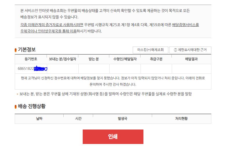 배송조회를 해도 택배사에 송장등기 조회가 전혀되지 않아서