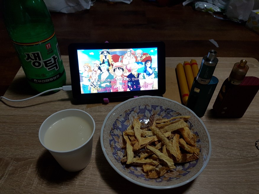 오늘은 그동안 바빠서 못봤던 애니나 보면서 생탁에 황태소금구이로 시작해봅니다