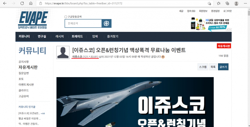 211004 가성비 좋은 액상 찾기,, 댓글+5 루루포골먹지마 쪽지보내기 자기소개 아이디로 검색 전체게시물 12-04 602  0