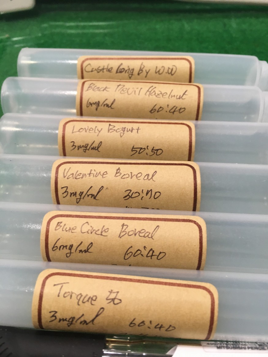 무려 3주간 쓸쓸하게 중탕 교반 중탕 교반의 루틴을 반복 끝에 이틀 뒤면 목표 숙성기간을 채우게 되어 이제 니코틴 함유량과 매칭되는 무화기를 선택하기 위해 드디어 샘플 베이핑을 해보려 합니다 +_+