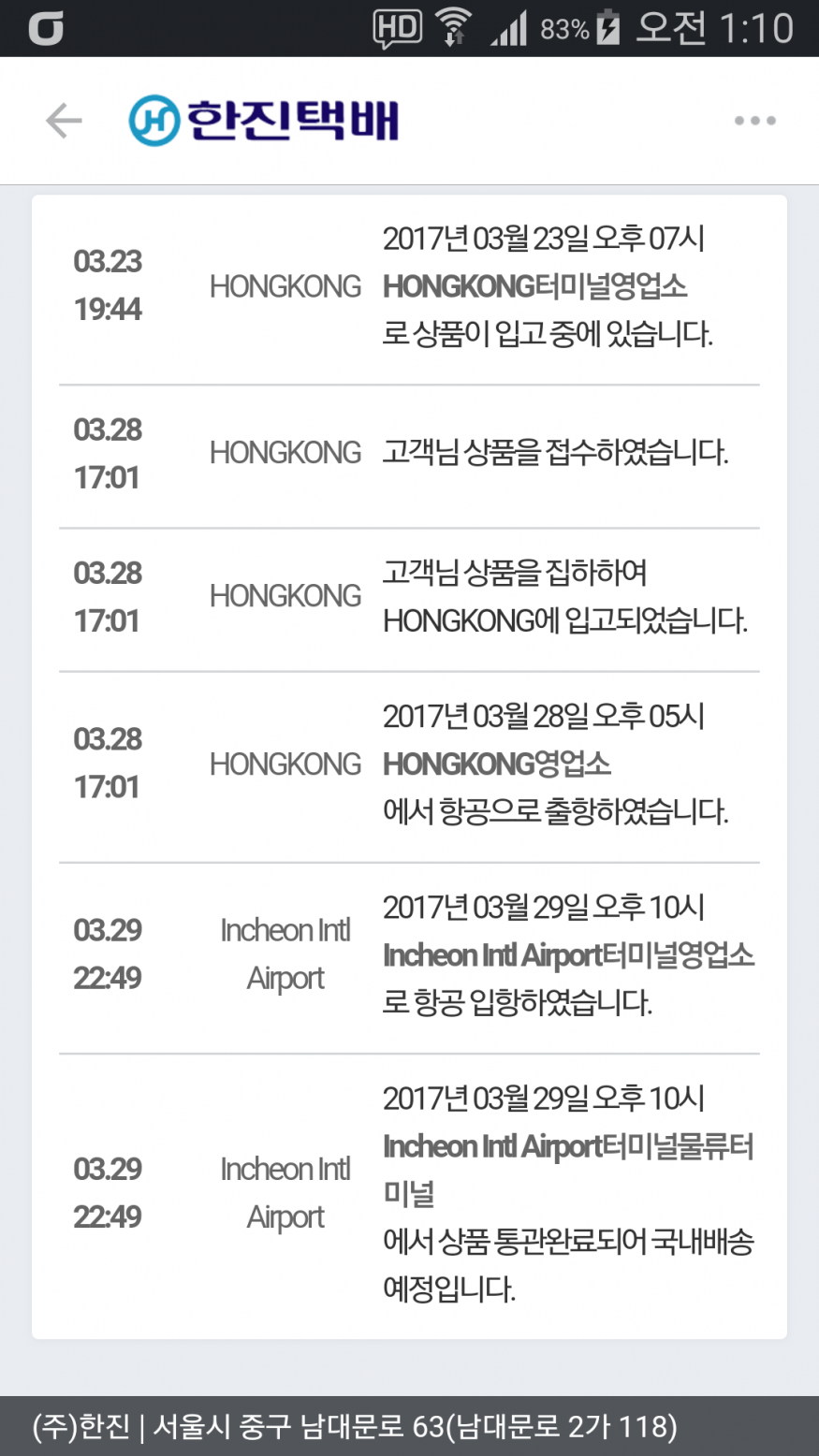 시간이 입국과 동시에 통관완료네요??