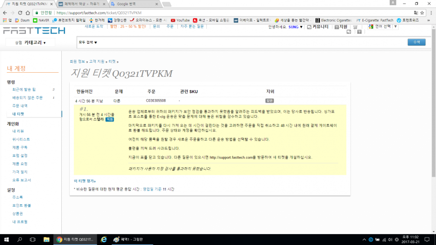 이틀전 액상 구매, 어제 싱포로 쉽 됐습니다. 다른 이유가 있는거 같으니 티켓으로 확인해 보세요~ |