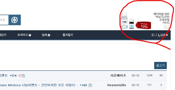 전자담배 관련 가장 커다란 커뮤니티에 접속만해도 저렇게 광고뜨는데.