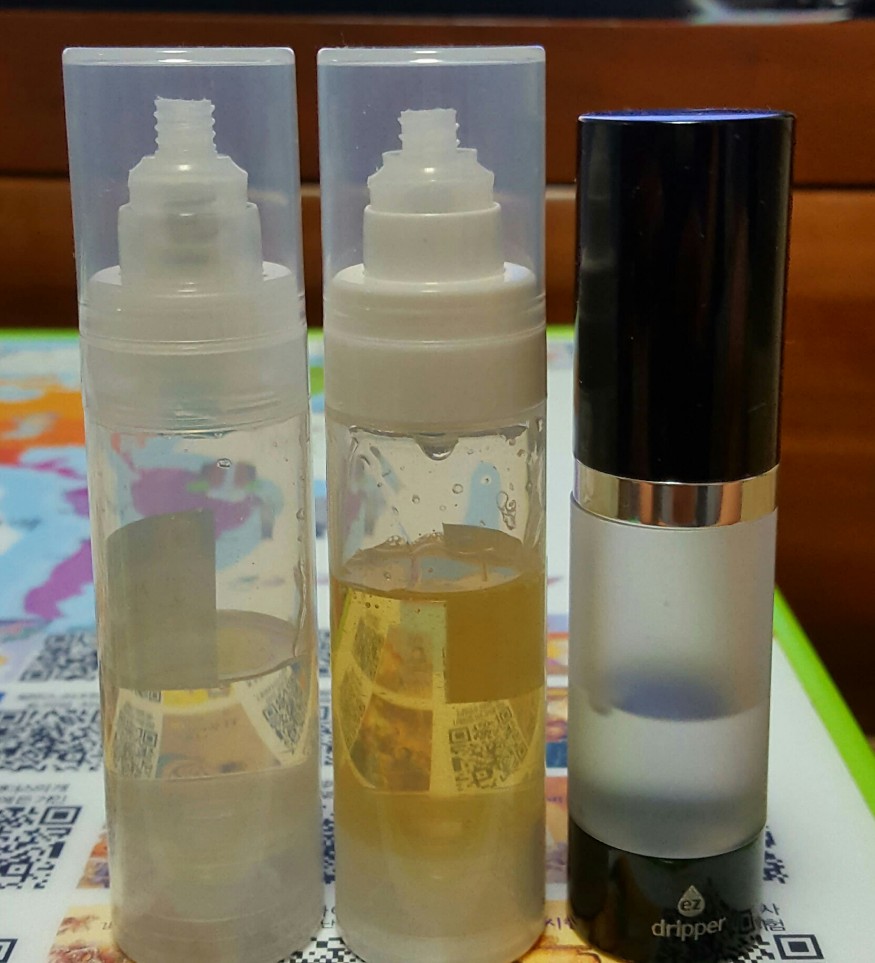 전담이 뭐라고 팁게시판에서 보고 다이소에서 공병두개 사와서 이거 만들고 있네요 하지만 가격대비 만족 스럽네요 ㅎㅎ 한가지 덧붙이면 공병안에 작은빨대같은게 넘길어서 액상이 조금만 남았을땐 펌프질해도 잘안나올까봐 반으로 잘라줬네요 그냥 후장주입하고 해피베이핑 합시다