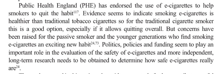연초와 비교하여 덜 유해하다는 점을 기사화 한 것은 보질 못한듯