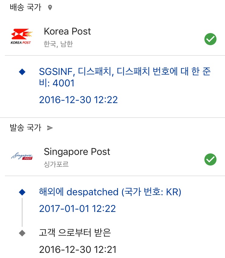 작년 12월23일 디스패치 후~~ 깜깜하다 오늘 교환국 도착했네요 힘들었습니다 기다리면 와요 ㅠㅠ |