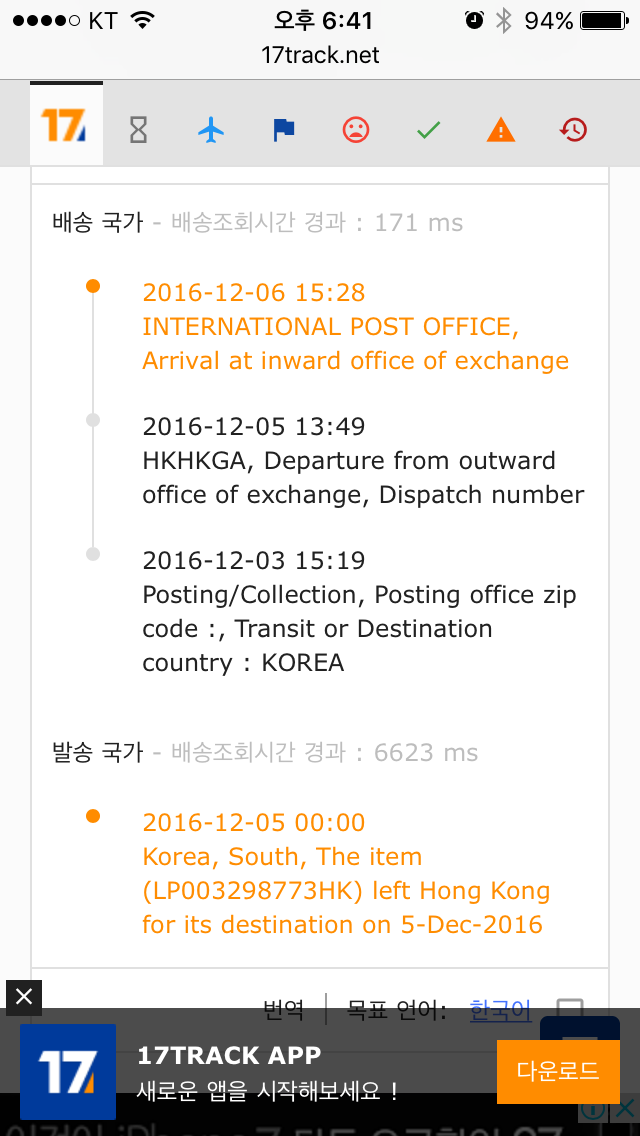 같은날 주문했는데 저는 발송국가란에 will leave hongkong 이라고 뜨던데