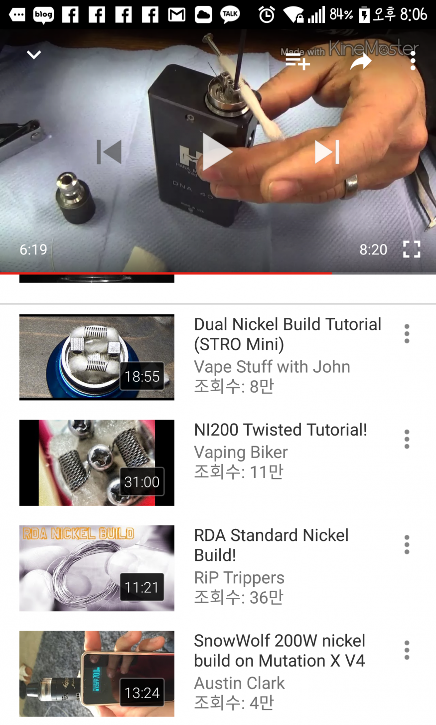 아마도 드라이번은 시도하지 않으셨을거 같네요... 마이크로로 감으셨다면 저옴에서 니켈 코일에 빨간불이 들어오지 않게 살짝 살짝 핫스팟은 잡아 주세야 되요... 그리고 코일 바퀴수는 8바퀴로 계산해주셔야.... 아니면 다리길이를 0으로... 니켈 마이크로 코일을 시도한 저 유툽은 좀 위험한 도전이라 생각됩니다... |