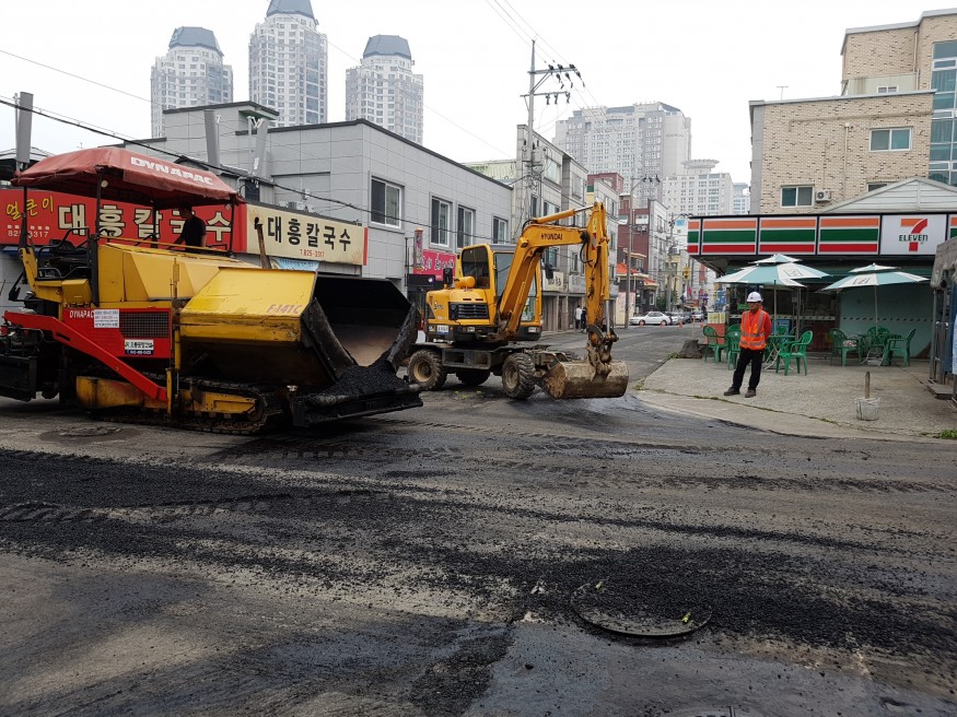 사전공지란 없죠...어느날 갑자기 아스팔트 작업차량이 도착하면 '아..이새x들 또 세금이 남아도는구나' |