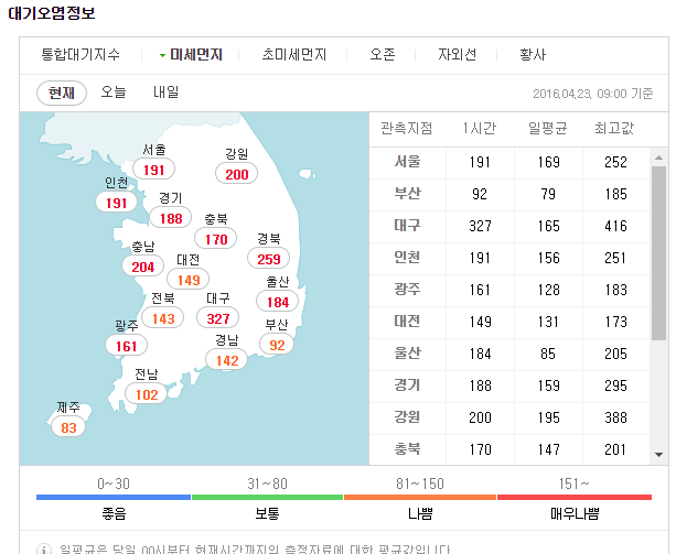 미세먼지 농도랍니다...