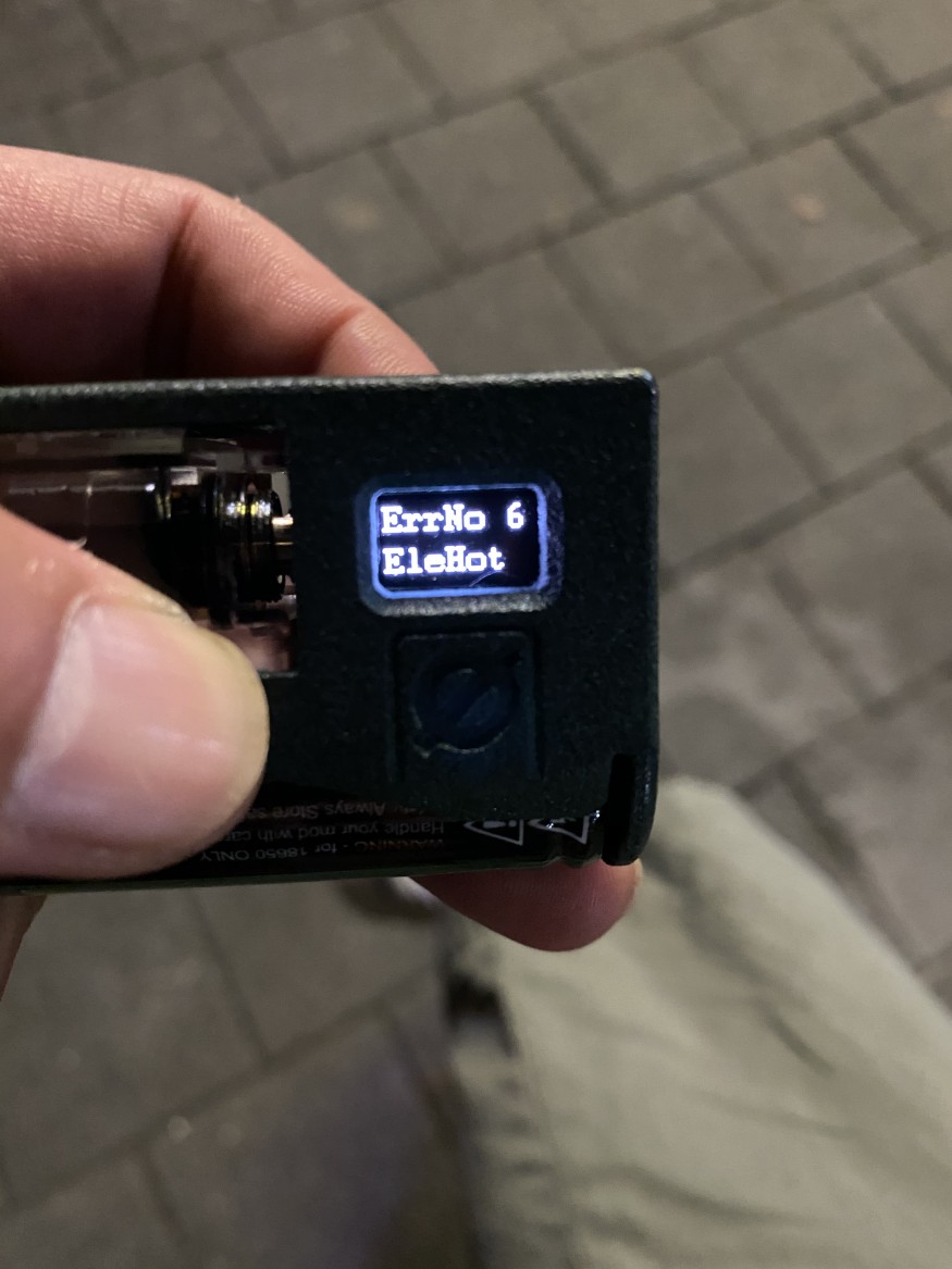 The electronics have heated up too much and needs to cool down. This error will not occur with normal usage of the mod 기기가 열을 너무 많이 받았어서 식혀야한다. 평범하게 사용한 경우에는 발생하지 않는 에러다. 라고 나오네요 |