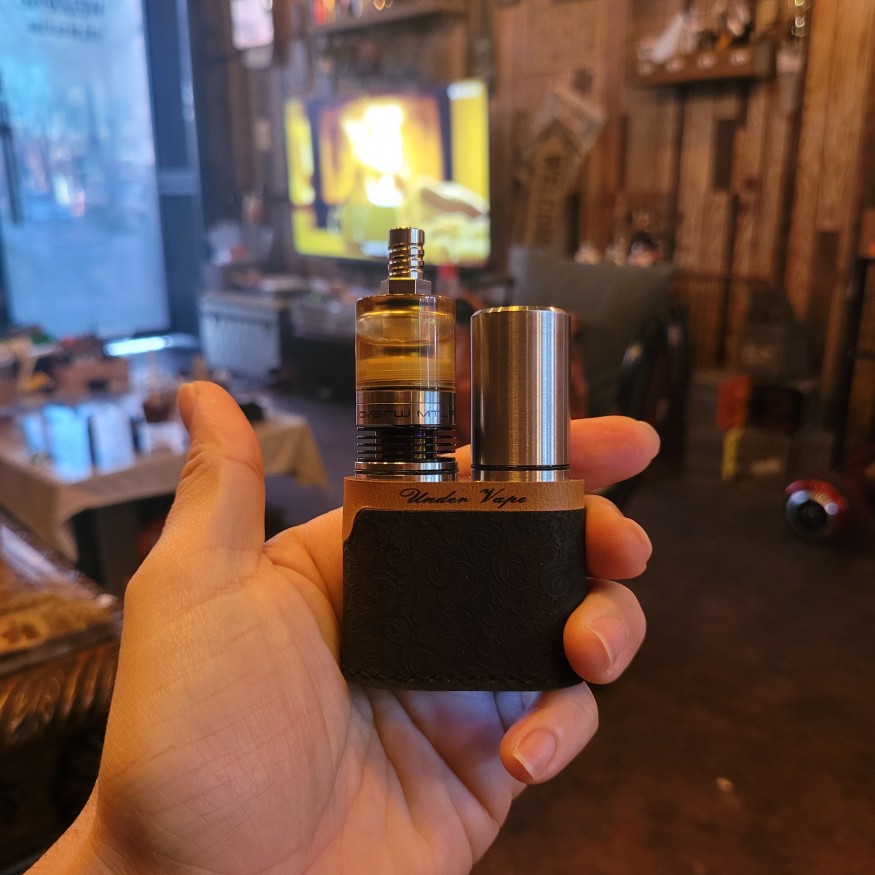 스트라텀 가죽 케이스에 언더베이프 로고.. 무화기 방열판으로 높이 맞춤 그리고 너트팁에 드바루 클경까지 사진하나에 포인트가 너무 많은데요?!? 스트라텀v2 아름답네요.. |