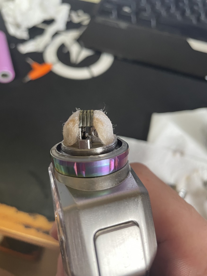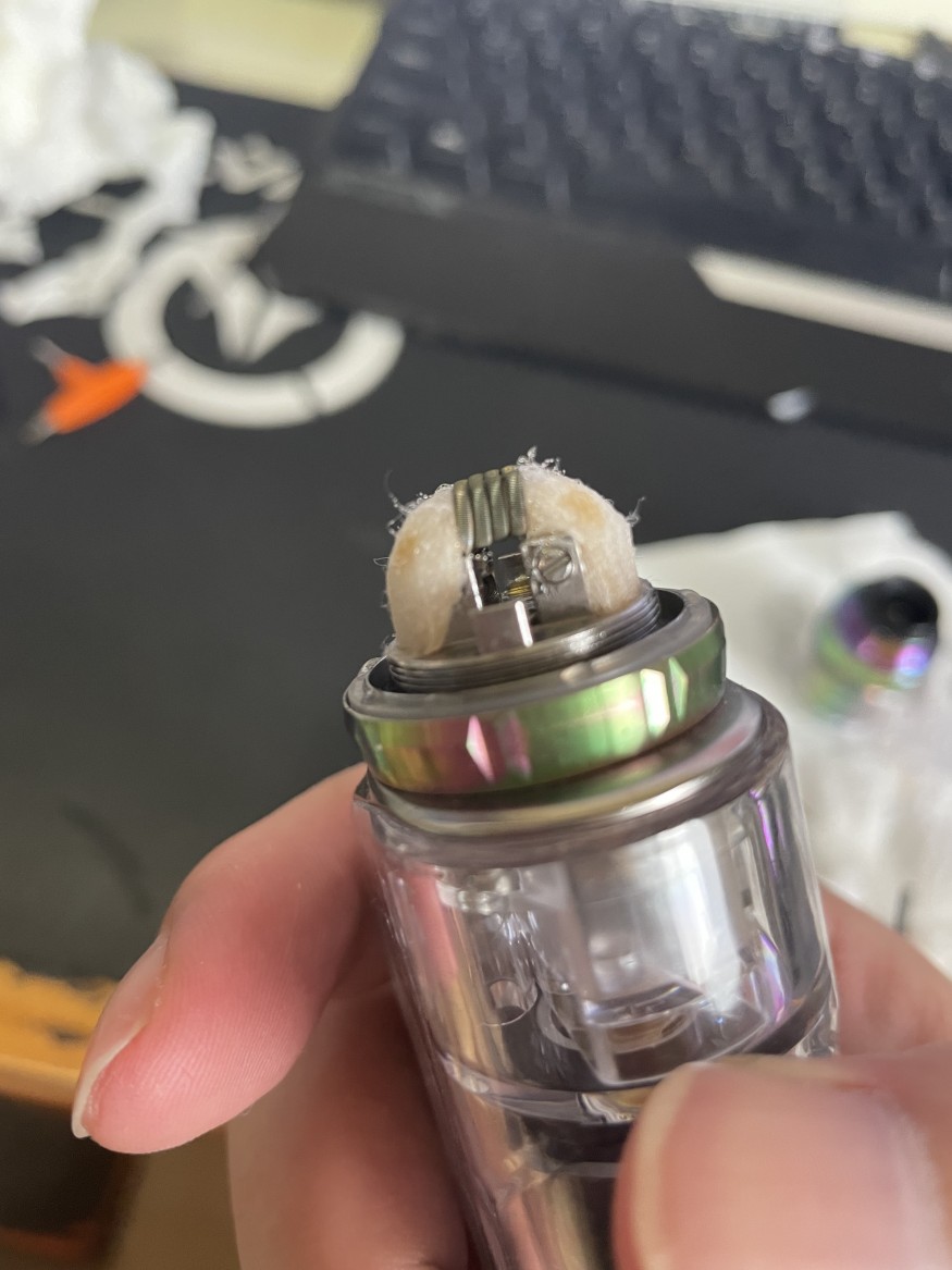 1. 솜이 많이 말라보이네요 촉촉하게 액상유입 잘되도록 솜 숱을 좀 쳐주세요