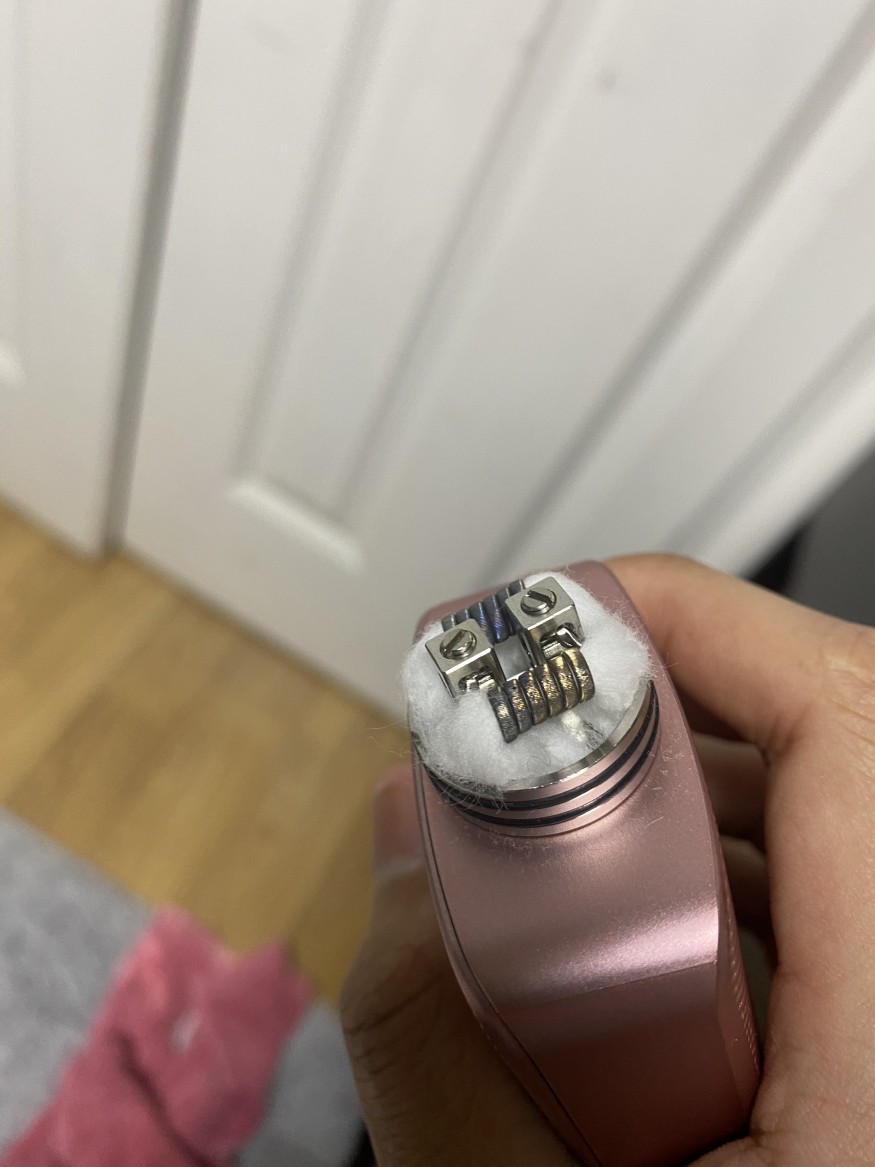 일단 에어홀 다 열고 쿨베이핑하시고 사진보면 발열면적이 너무 넓은 코일인거같아요. 어떤코일인지 사진상으로는 모르겟는데, 코일 바로밑에 솜도 치워주세요. 불필요한 발열이 더 생깁니다. |