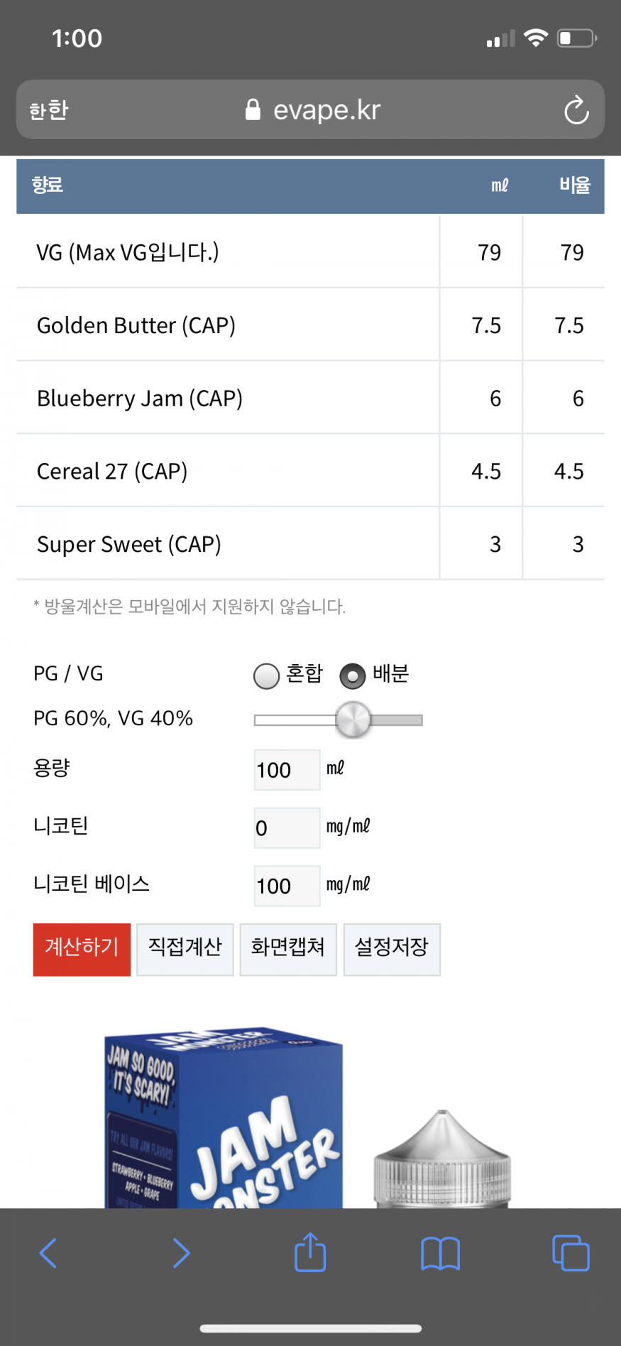 위에 vg아랬쪽으로 써 있는 영어들은 각각 해당레시피에 들어가는 향료들 목록이구요 괄호안에 써져있는(cap)은 해당 향료회사의 이름입니다 (같은이름의 향료라도 회사별로 맛이 전혀 다릅니다) N베이스는 니코틴만을 따로구하기 힘든분들을 위해 액상의 베이스가되는 용액(vg/pg)에 니코틴을 첨가해서 파는 제품이고 위의 향료들을 한데묶어서 프리믹스 라는 형태로 판매하고 있습니다 결국 처음으로 김장을 하시는거면 N베이스를 입호흡용 1병으로 구입하시고 만들고싶은 액상의 프리믹스를 한병 구입하셔서 그 두가지를 섞어주시면 끝입니다 그렇게 어렵지 않으니 위의 방법대로 한번 도전해보시는것도 좋을것같습니다 향료김장은 김장액상의 구조를 조금 더 이해하신뒤에 하셔도 늦지않으실거에요 :) |