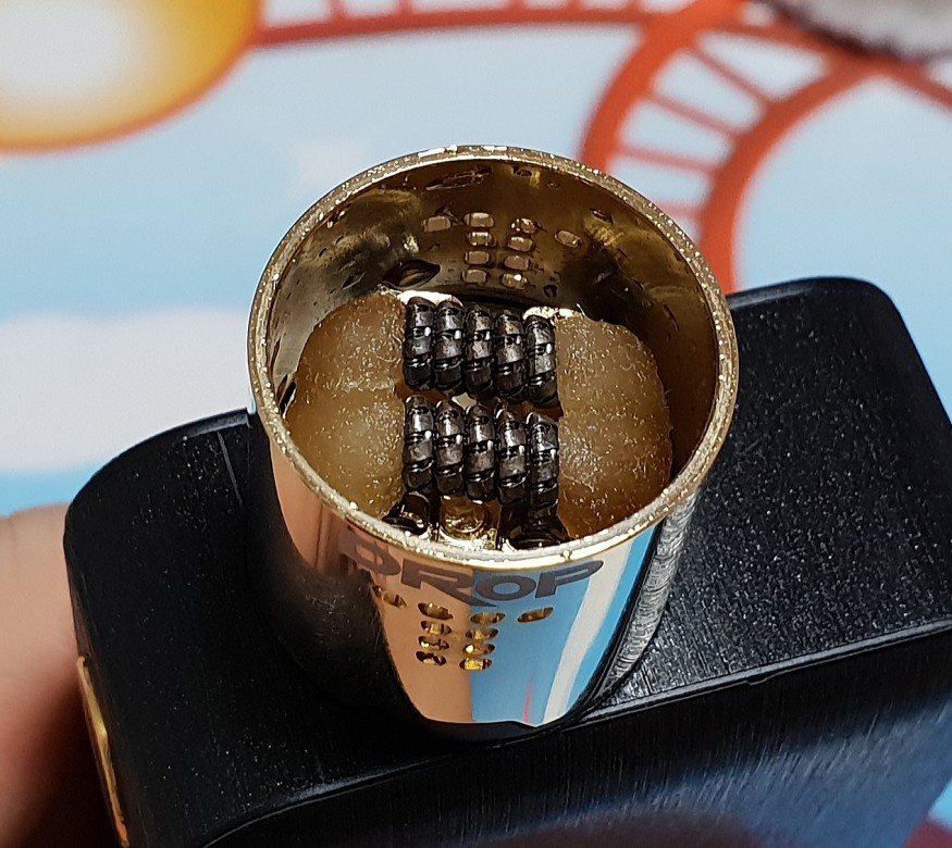 P.s Xfkm 슈퍼 저거너트 0.3옴 코일을 듀얼로 핫스팟 잡고 보니 0.15옴 제대로 나왔고 75w (3.32v)로 베이핑했습니다. 베이핑해보니 느낀점은 무화량 대박...맛표현은 기존이랑 별차이 못느꼈음...단! 액상튐 전혀 없으며 액상은 기존보다 더 빨리 소모하는 느낌을 받았으며 그리고 기존에 느끼지 못했던 발열을 느꼈습니다.