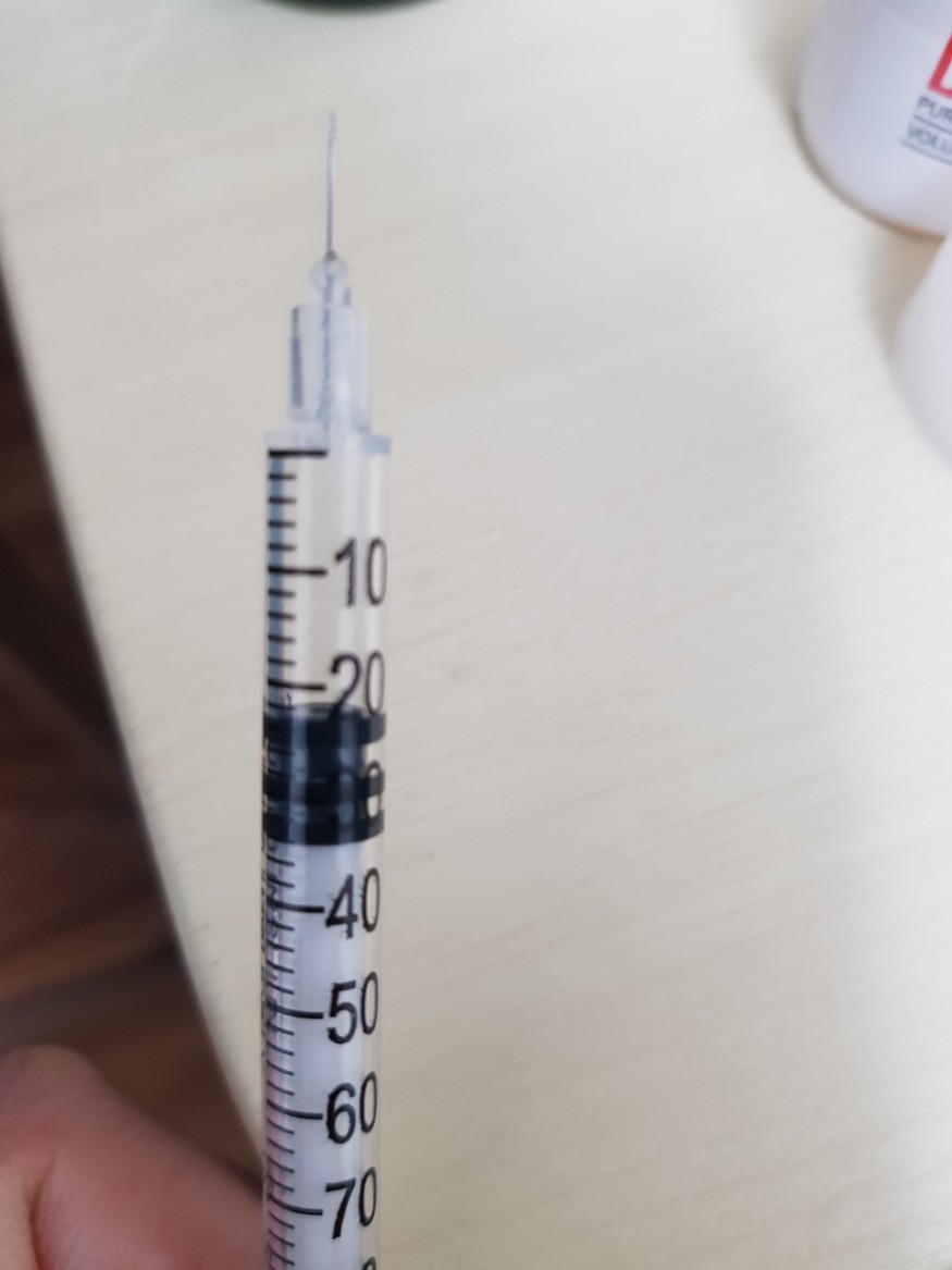 @복실아사랑해38이 0.38ml에요 주사기가 100ml가 아니쟈나요1ml주사기라면서용 다채워도 1ml.. |