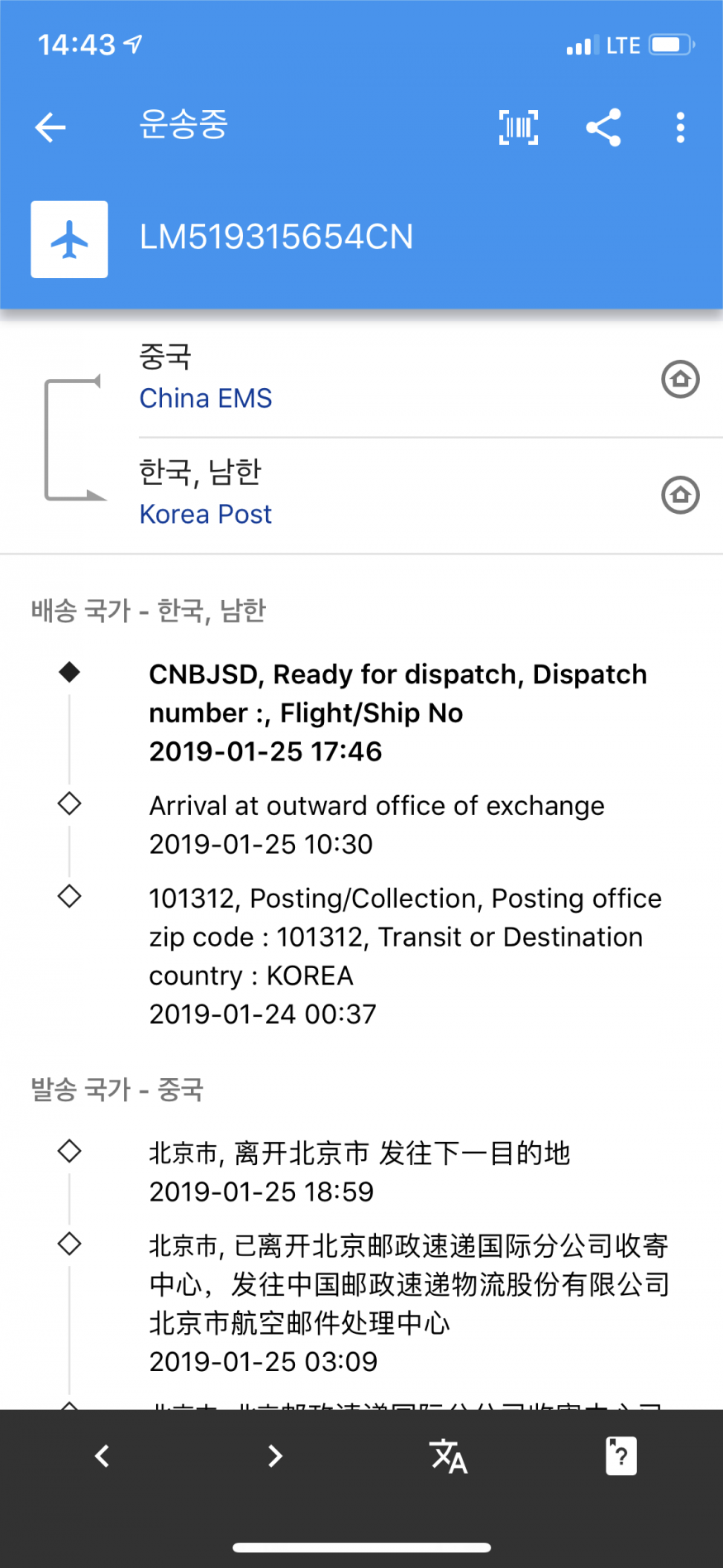 그럼 그런 앞이 막막하고 조회 안될때도 한국에 들어오기만 하면 우체국에서 송장 조회 되나요?? |
