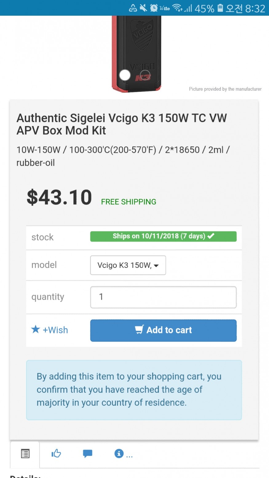 ships on 10/11/2018(7 days)