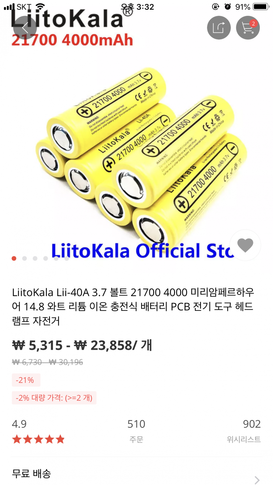 기어베스트 18650 구입못하나요?? 댓글+1개