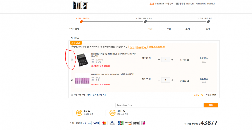 기베 직구할때 충전기하고 건전지는 같이 주문이 안되네요..봐주세요