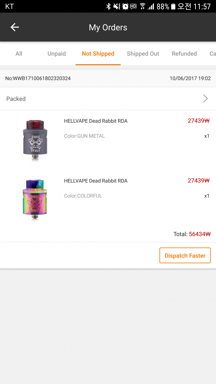 가베가 shipped out 이렇게 바뀌구요ㅎㅎ |