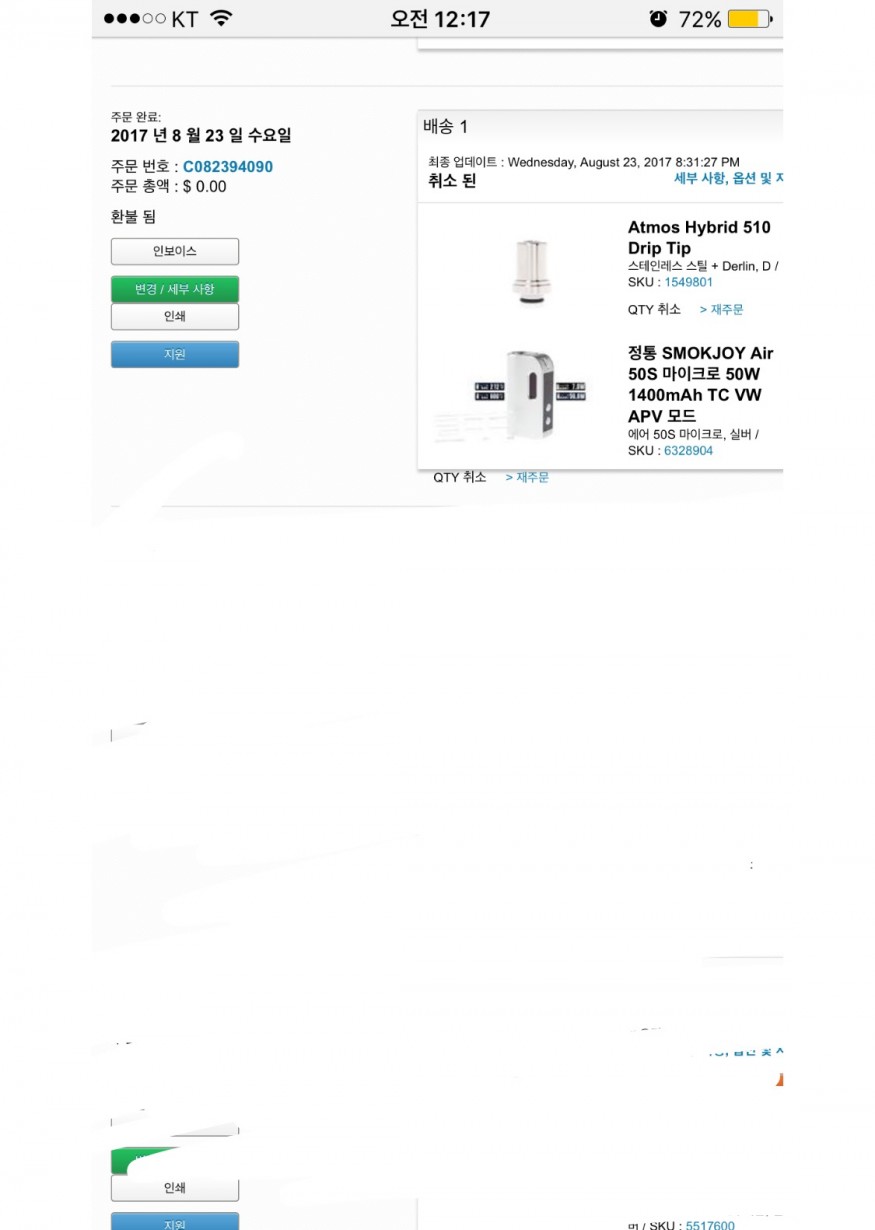 잘못주문해서 바로 취소했는데