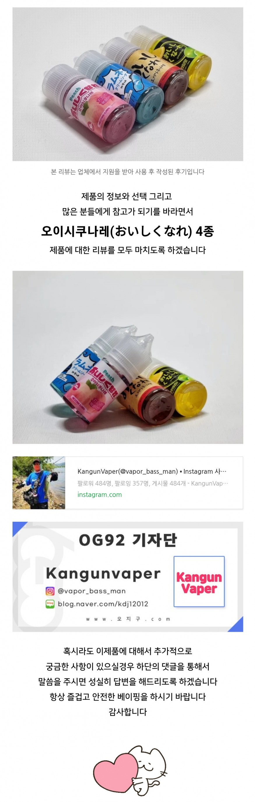 [엔바이오랩] 오이시쿠나레 입호흡액상 4종 후기