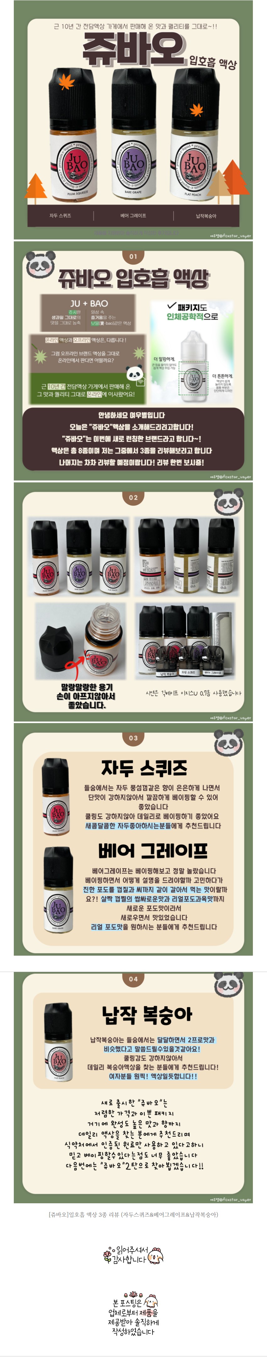 [쥬바오]입호흡 액상 3종 리뷰 (자두스퀴즈&베어그레이프&납작복숭아)