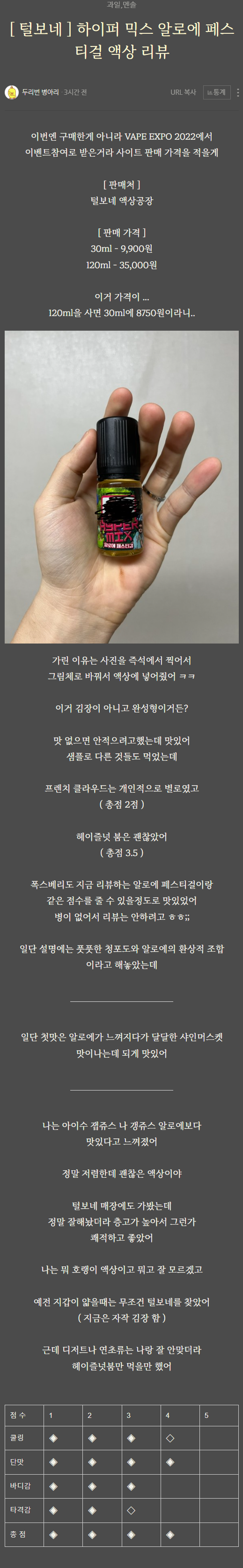 [ 털보네 ] 하이퍼믹스 알로에 페스티걸 입호흡 액상 리뷰