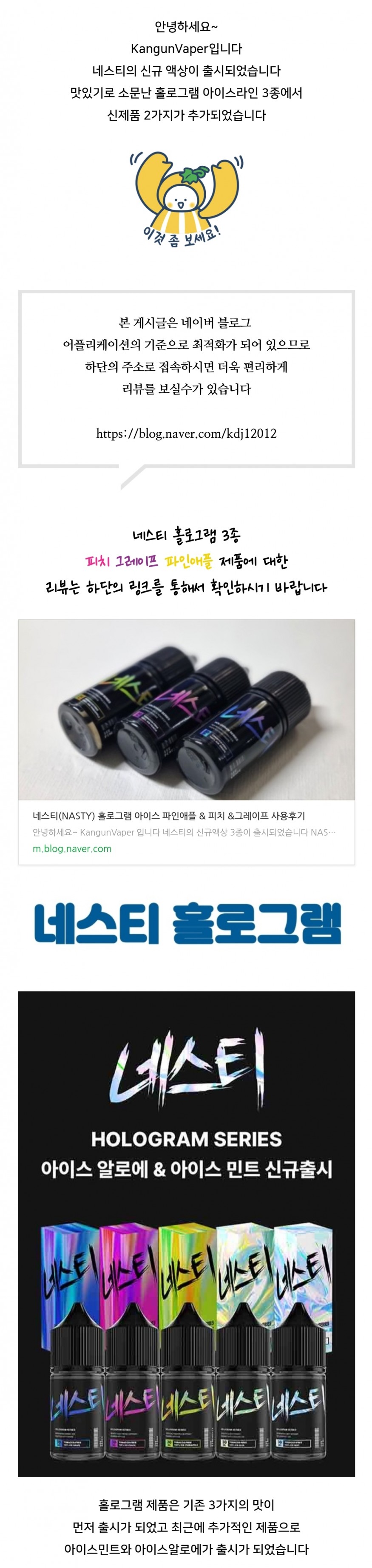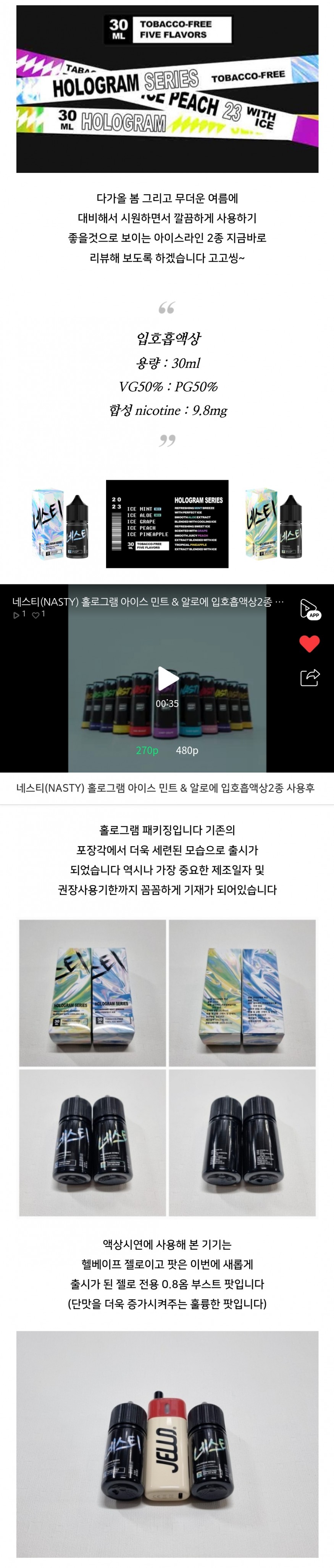 네스티(NASTY) 홀로그램 아이스 민트 & 알로에 입호흡액상2종 사용후기