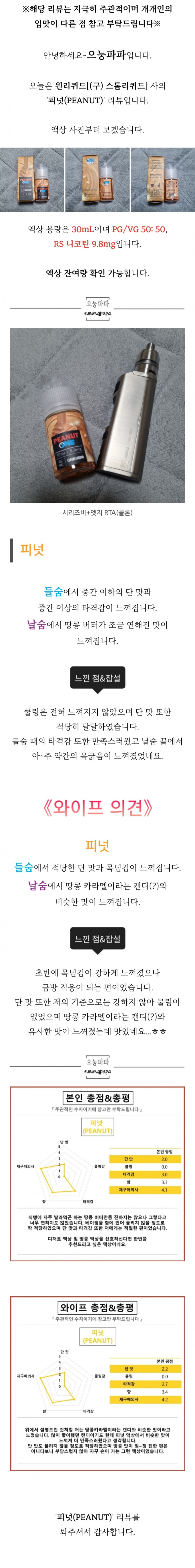 [원리퀴드] '피넛(PEANUT)' 입호흡액상 리뷰 > 리뷰게시판