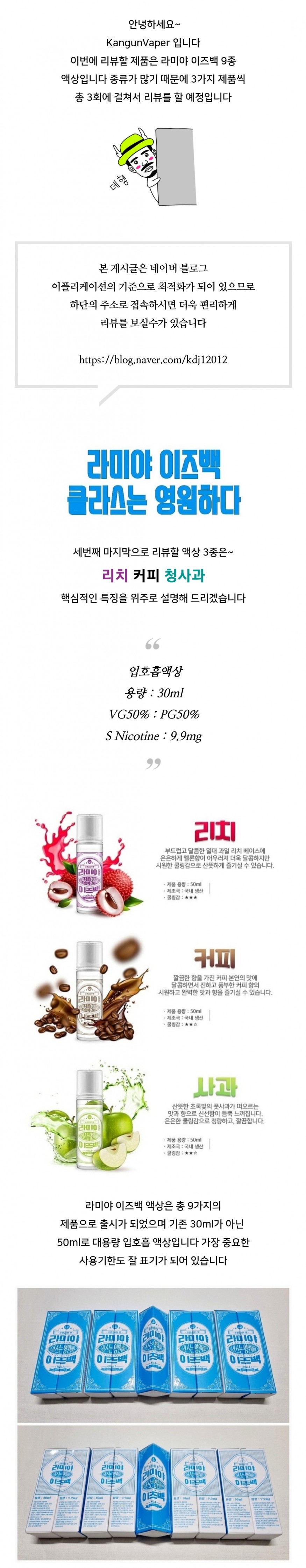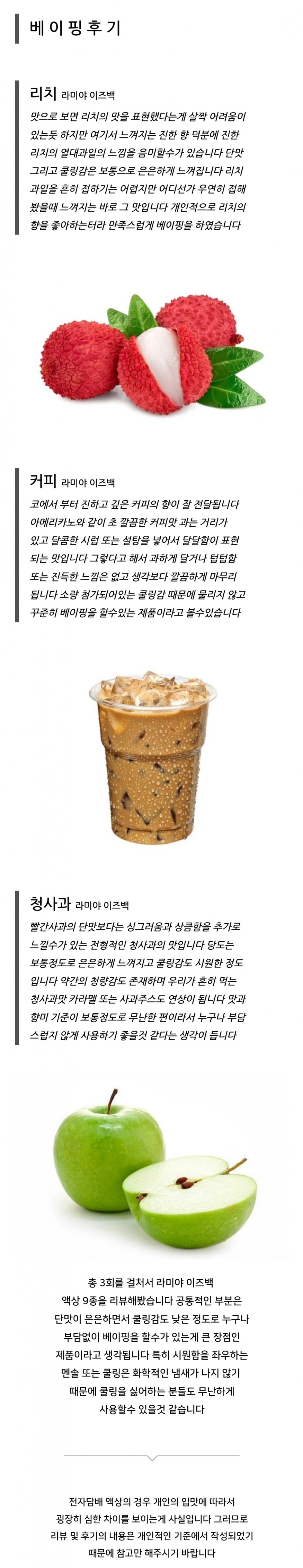 라미야 이즈백 리치 & 커피 & 청사과 입호흡액상 사용후기