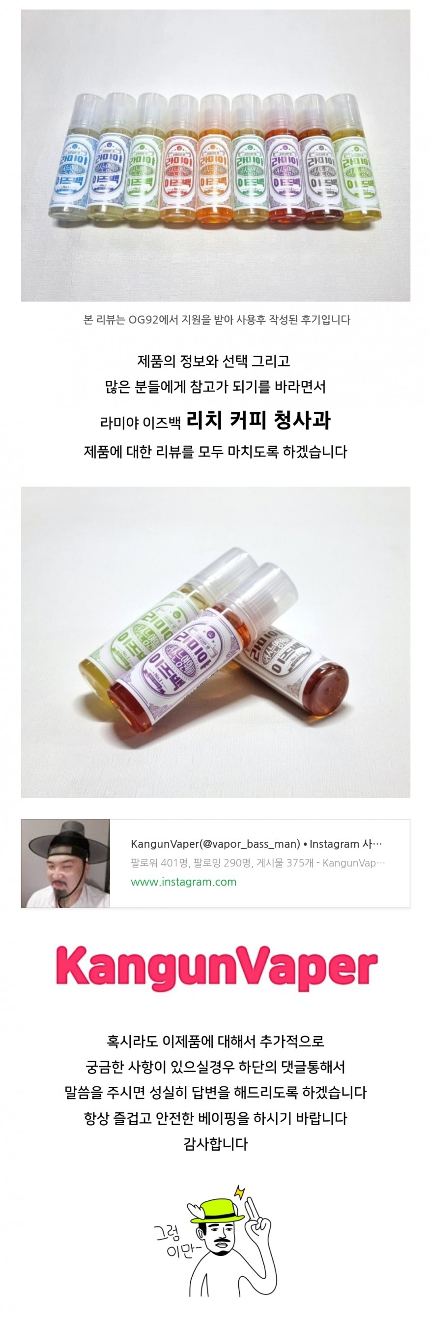 라미야 이즈백 멘솔 & 청포도 & 블루베리 입호흡액상 사용후기
