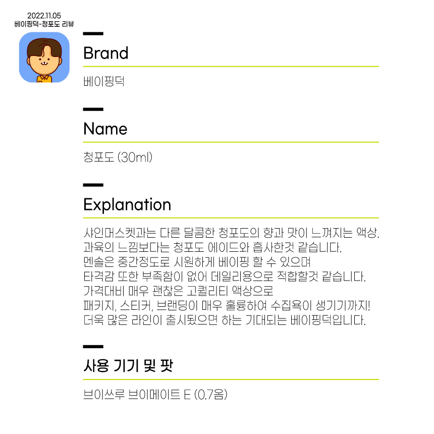 [베이핑덕]청포도(30ml)-리뷰