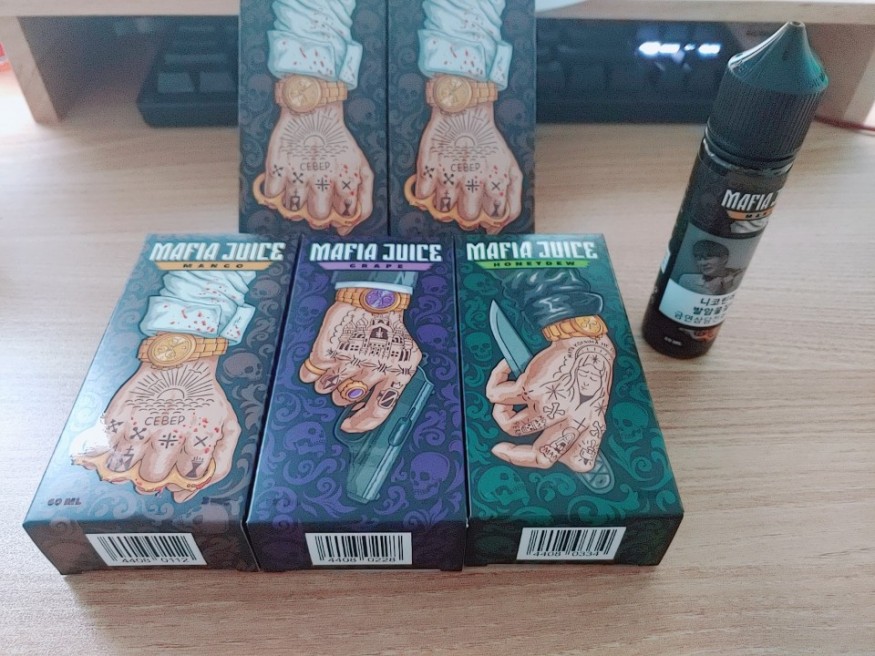 자연히 단맛이 강한 액상이 많아서 베이핑하면 입이 텁텁했는데, 마피아쥬스는 향에 중점을 뒀는지 입에 남는 게 없습니다.