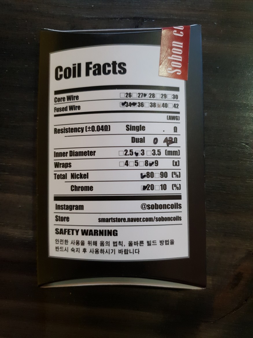 Nutrition Facts 를 연상시키는 Coil Facts가 적혀있었음을 확인할수 있었습니다. 이번 라인업은 디자인 또한 신경을